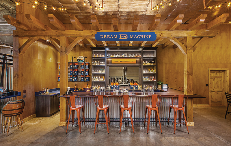 Located across the street from Dollar Lake and inside Fenton Township’s well-loved Fenton Winery & Brewery, the Dream Machine Distillery is more than a bar — it’s an architectural statement and a physical expression of craftsmanship and creativity. The design strikes a balance between industrial edge and timeless craft, complementing the exposed mechanicals and brewery equipment while introducing warmth, character, and cohesion. Every joint, bracket, and finish detail was custom-executed to ensure both durability in a high-traffic environment and alignment with the brewery’s brand personality.